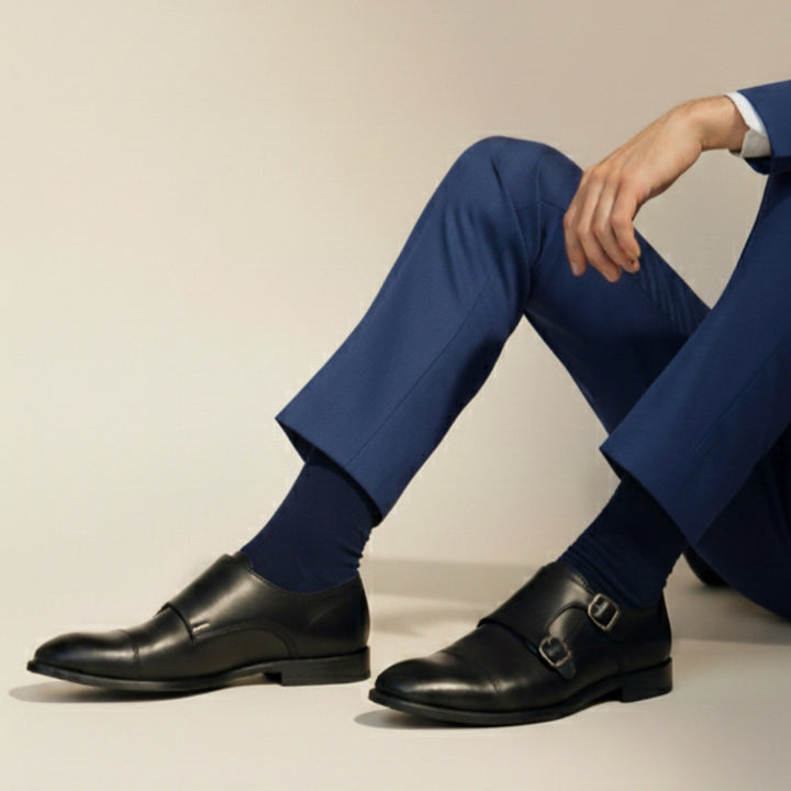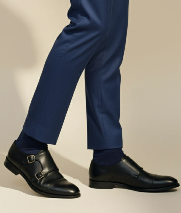 2. Walk confidently and stylishly with the double monk style.