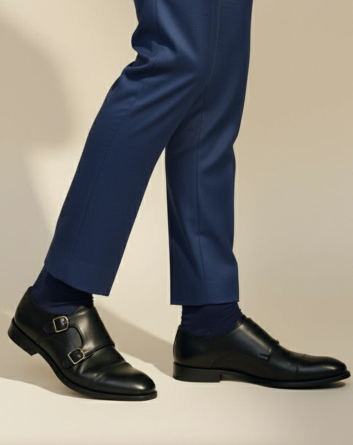 Look no further than our Black Double Monk Shoes. Featuring two straps across the upper, these shoes are the hottest trend in men's fashion. Made with 100% cow leather and a black cow leather lining, these shoes are not only stylish but also high-quality. The leather sole and Zurigo last, with a rounded toe for a traditional English look, add to the overall sophistication of these shoes.