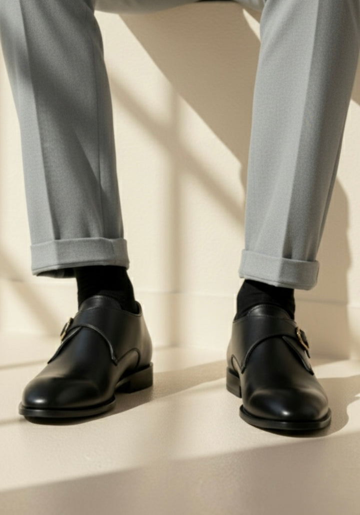 Look no further than our Black Single Monk Shoes! Have you ever wanted to make a statement with your footwear? Our single monkstrap design is the perfect way to do just that.