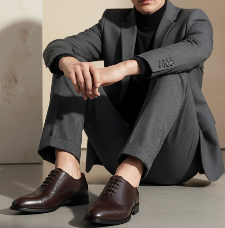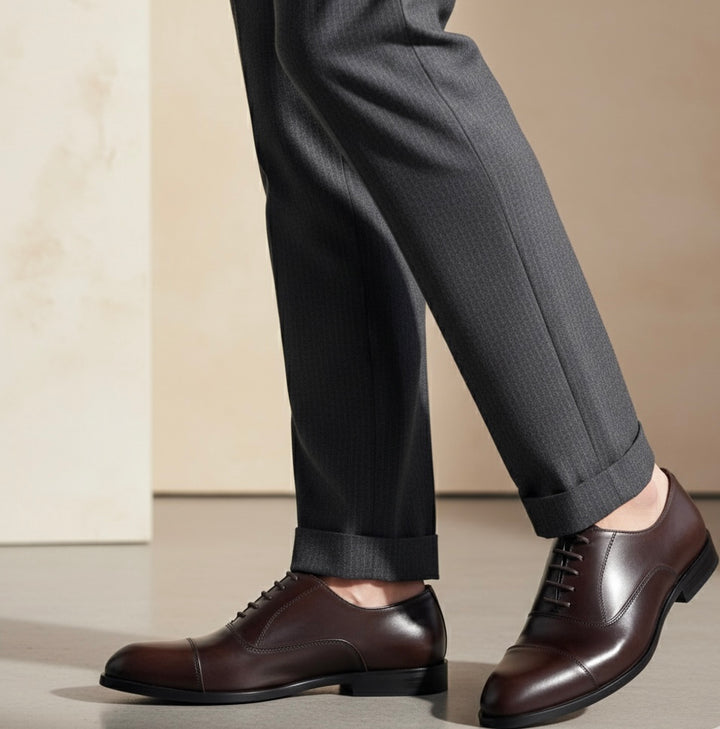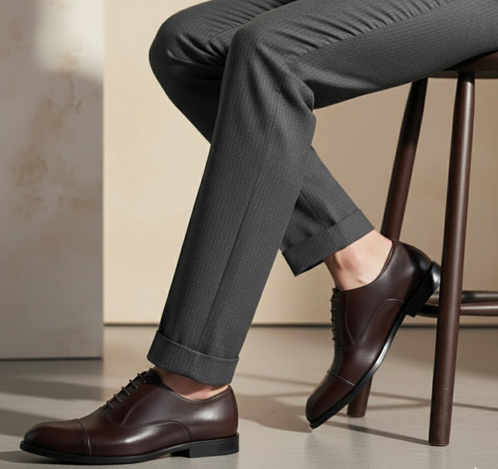 Experience the art of handmade shoes with our Brown Captoe Oxford. This shoe is not just a staple in your wardrobe, but also a work of art crafted with respect by our skilled artisans. Perfect for any occasion, whether formal or for the office. Upgrade your shoe game with our Formal Men Collection. Thank you for supporting our artisans and their craft.
